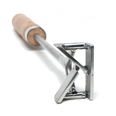 Marcador de gado produzido em Inox 304 na letra (K), cabo com acabamento e suporte para dedão de madeira tratada.